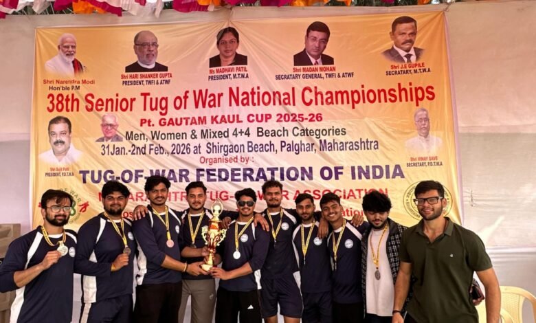 जौनपुर /महाराष्ट्र। पालघर जनपद स्थित शिरगांव बीच पर 31 जनवरी से 2 फरवरी 2026 तक आयोजित सीनियर टग ऑफ वॉर नेशनल चैंपियनशिप (पं. गौतम कौल कप 2025-26) में उत्तर प्रदेश की पुरुष टीम ने शानदार प्रदर्शन करते हुए राष्ट्रीय सिल्वर रजक पदक अपने नाम किया।